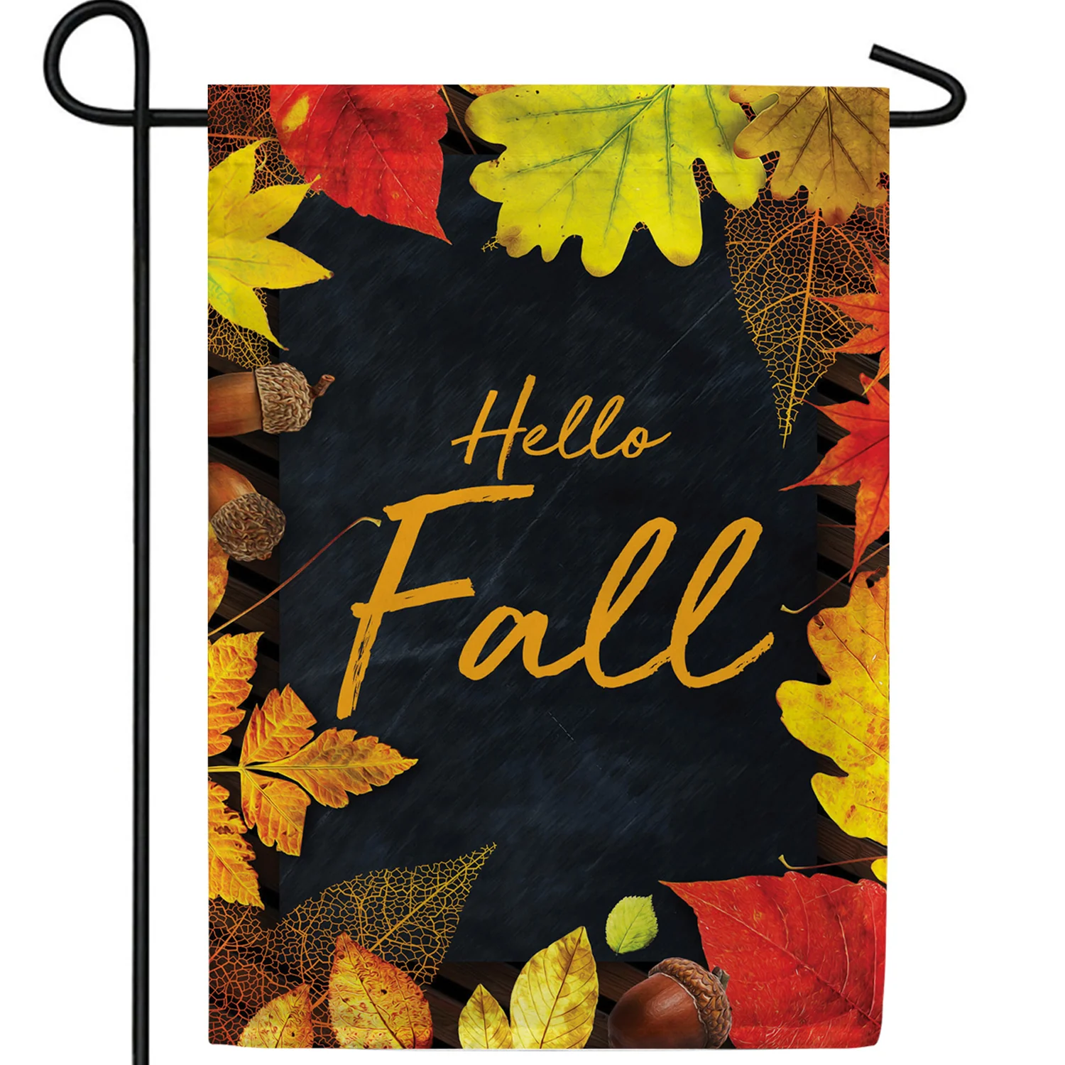 Hello Fall On Black Slate Double Sided Garden Flag—
